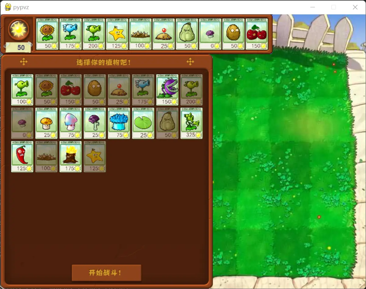 植物大战僵尸游戏的Python实现基于marblexu的项目进行创作,部分代码也整合自callmebg的项目