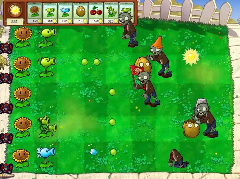 - 已有的植物:向日葵,豌豆射手,坚果墙,寒冰射手,樱桃炸弹,三线射手,大嘴花,小喷菇,土豆雷,地刺,胆小菇,倭瓜,火爆辣椒,阳光菇,寒冰菇,魅惑菇